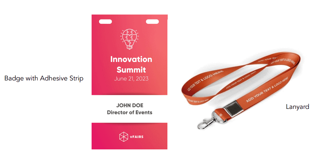 The picture shows how personalized badges and lanyards will look.