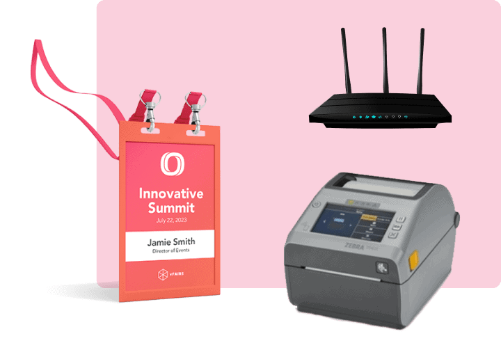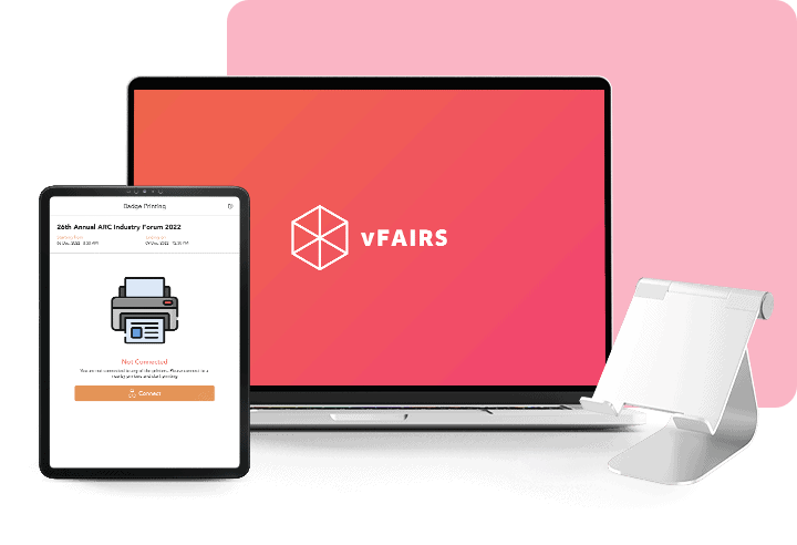Deliver a smooth and swift check-in and badging process with our elegant tech stack which includes vFairs check-in and badge printing app, branded lanyards, iPad tablets, registrations laptops, tablet stands, and more.