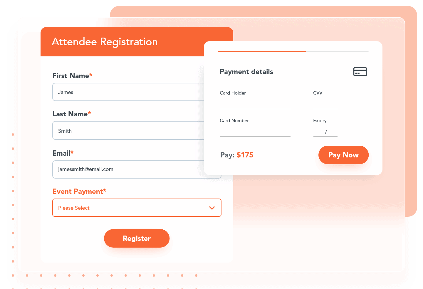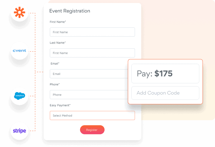 Make it super easy for your audience to make payments with our integration options with PayPal and Stripe. Promote your event like a pro with our pre-event email marketing tools, attendee management interface, CRM integrations, and tiered pricing packages.