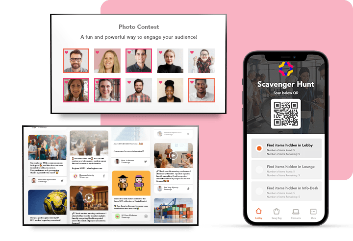 Foster conversations and connections with an on-site social media wall, QR based scavenger hunts, on-site leaderboard station, and more. Let attendees make memories with our on-site photo booths with many frames and filters to choose from.