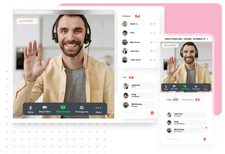 Who says webinars are boring? With vFairs virtual event platform, take your webinar fatigue away with realistic 3D designs, a speaker hub, interactive activities, video integrations, and multiple presentation options. Host live Q&As and run polls within live webinars to glue attendees to their screens.