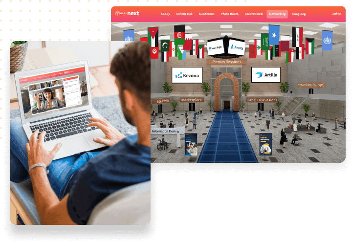 Reach a global audience with our virtual event software that offers an immersive 3D environment. Boost engagement with features like audio and video chat, Spatial Networking, smart matchmaking, live feed, breakout rooms, networking lounge, and roundtables.