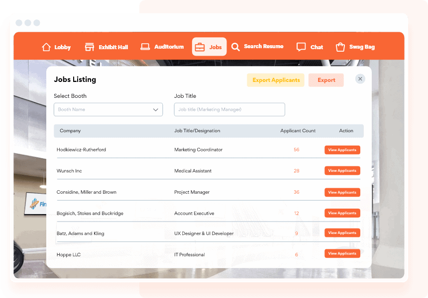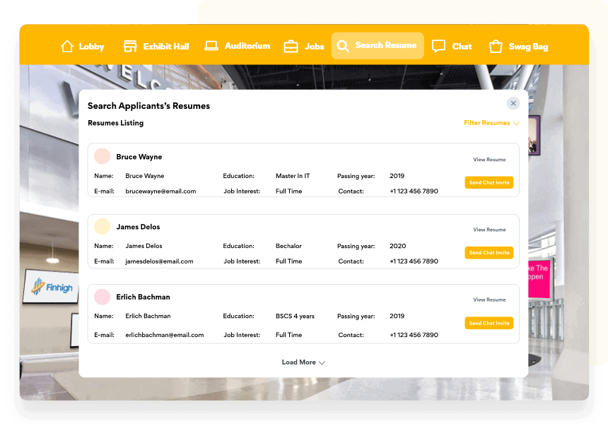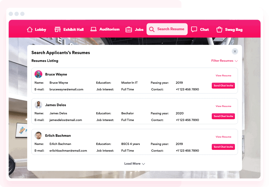 vFairs offers employers access to a larger candidate pool. Recruiters can search and filter resumes and conduct screening interviews right from within the platform.