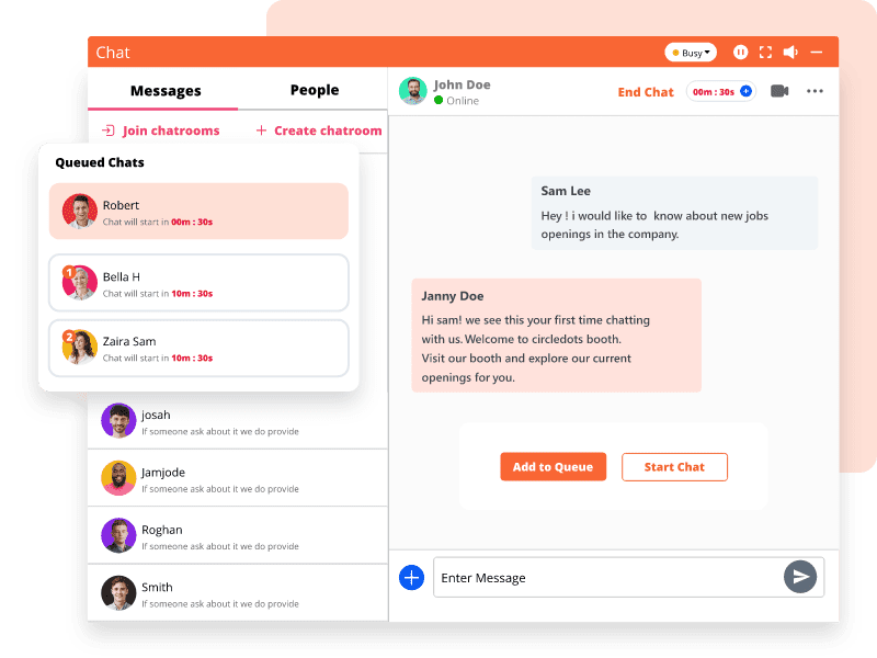 Connect with other candidates and talk to them in a flexible, virtual setting. Network more effectively while moving around freely.