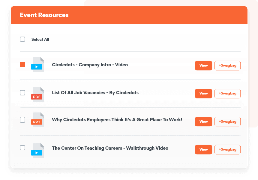 Let employers post job openings and job descriptions on their booths. Help attendees browse through information at their own pace and save it for later with our virtual swag bag.