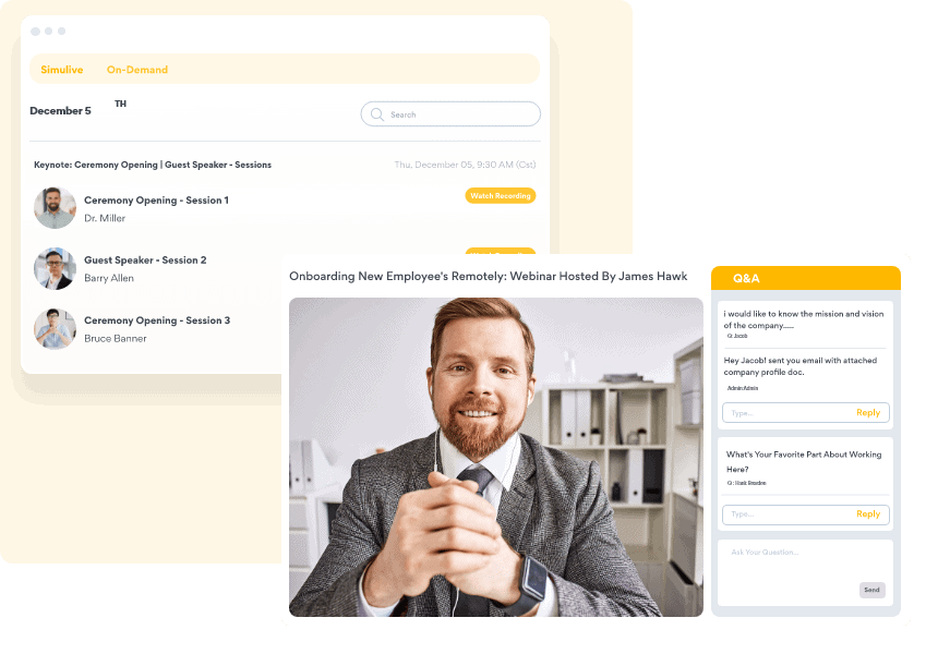 Host live presentations, or upload on-demand webinars your employees can watch on their own time. Manage a Q&A section within the webinar where employees can ask questions about your company.