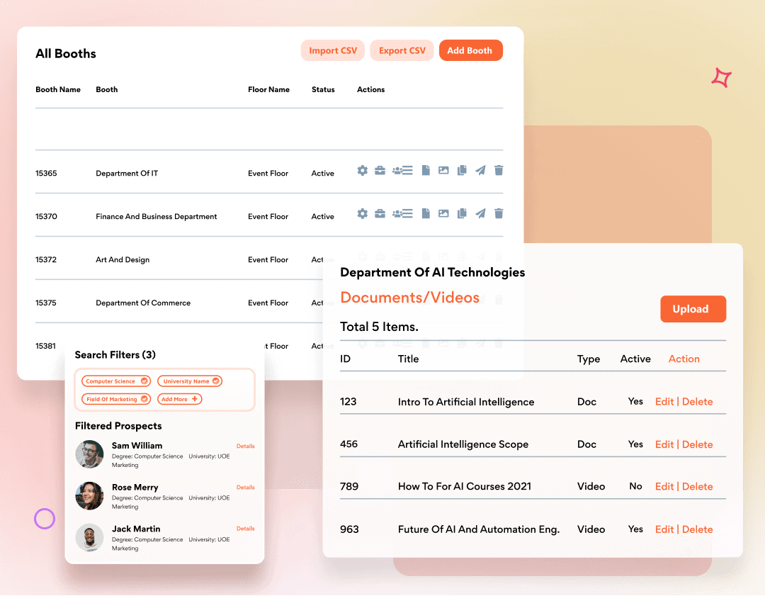 Invite students to get a taste of campus life, attend live talks, get taster lectures and network with academics in an easy to organize, convenient to attend virtual open day that can stay live all year long.