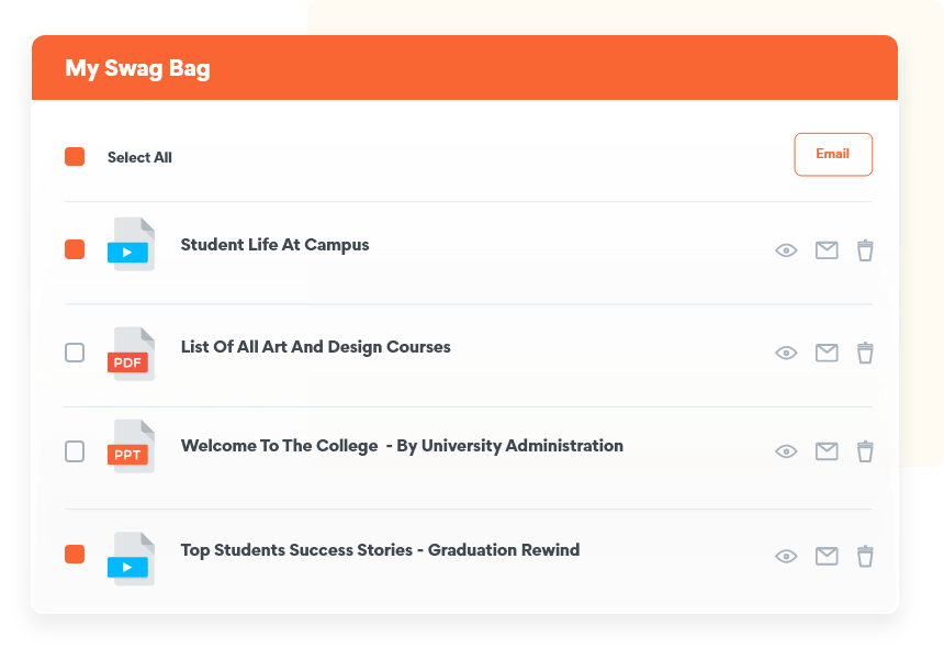 Help schools connect at your virtual college fair through text, audio or video chat. School recruiters and students can request meetings to learn more about each other.