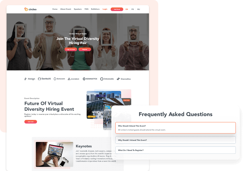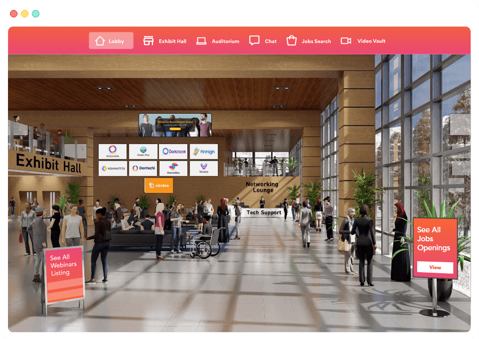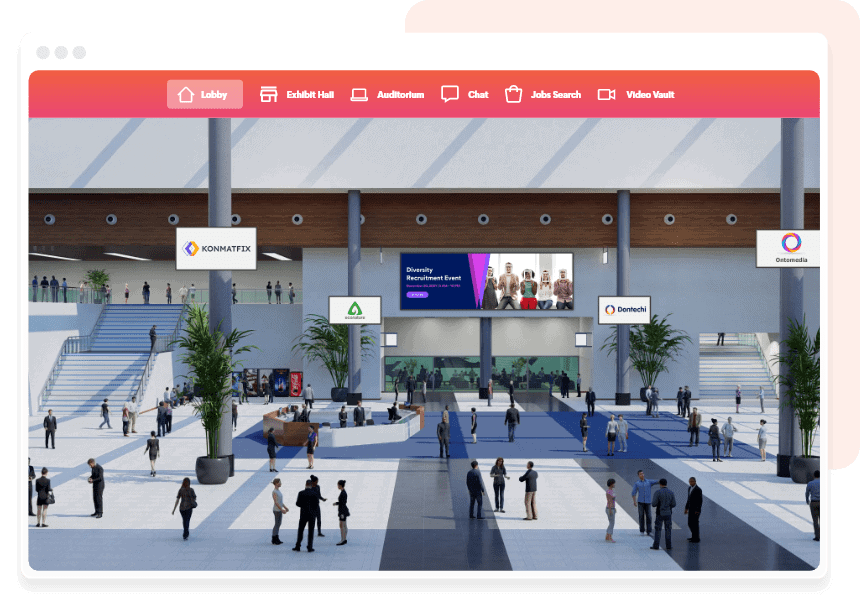 Cultivate a more vibrant and high-performing workforce. vFairs offers event organizers and employers the opportunity to remove hiring obstacles and biases. Share vacancies with a wider audience, screen resumes faster, and conduct initial interviews of the strongest diversity candidates.