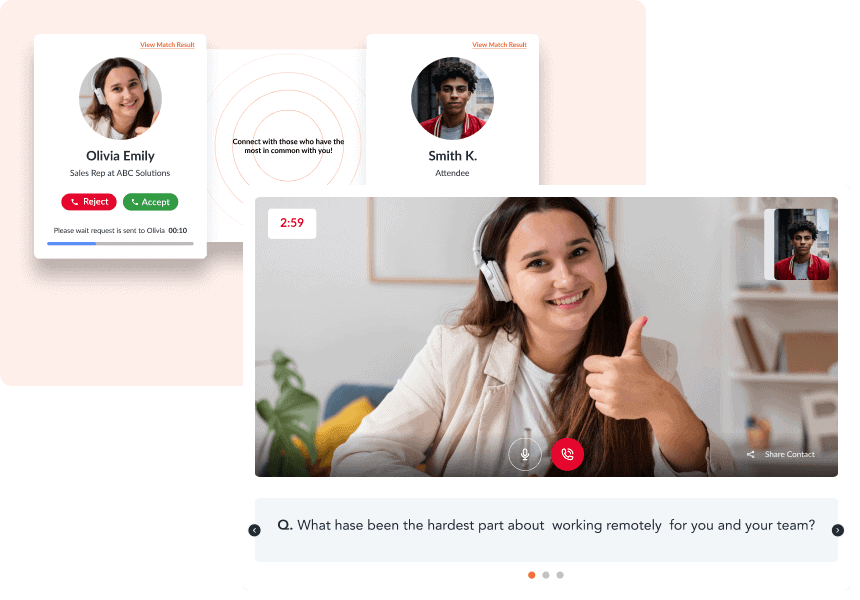 Attendees can answer a few custom questions, get matched based on their criteria, network in a timed environment, answer ice-breaker questions, share contact info and get a new match once time’s up!