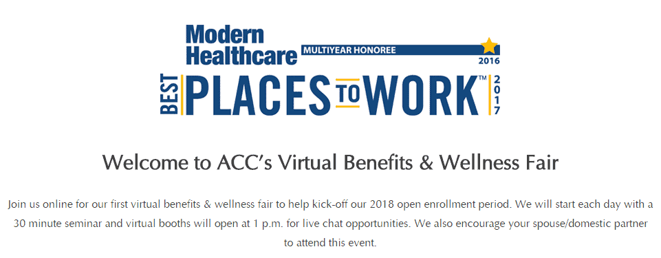 Acknowledging this opportunity to strengthen ties with their staff, the American College of Cardiology hosted a terrific Virtual Benefits Fair that was easy on their pocket, yet armed their employees (both onsite and remote) with essential information about available incentives to uphold their employer brand as one of the top places to work.