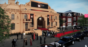 Attendees landed ‘outside’ of the custom designed virtual venue, right onto the red carpet. Guests then entered into a lobby with chandeliers and a grand staircase. Diverse 3D avatars were standing about dressed in cocktail dresses. A step-and-repeat with camera lights flashing as they would at a red carpet event further added to the luxurious feel. From here attendees could venture into the auditorium or the halls of fame.