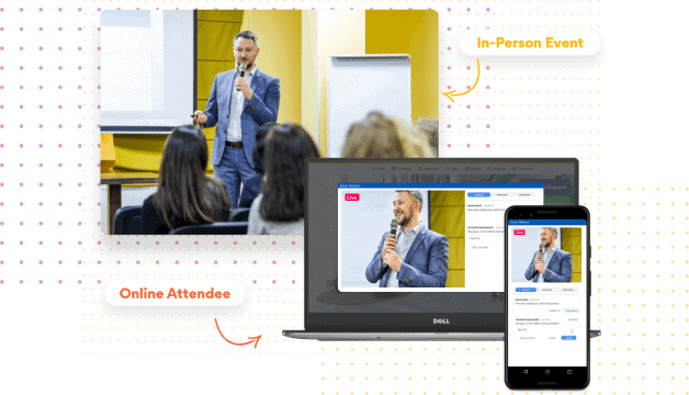 Model your virtual environment after the live event experience using amazing 3D design, live streaming, cross-channel networking, and interactive activities onsite and online.