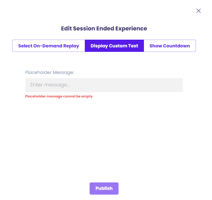 Another easy but sure way to create a great impression on attendees is by adding a countdown to your session screen. If the session hasn’t begun yet, anyone who clicks to join, they’ll see a timer for when the session will start. This is a great way to make sure you don’t lose the attendees joining in early. In case attendees want to rejoin instead of waiting, they can check the time and know when to come back!