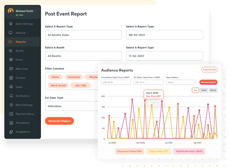 Extract event insights with real-time metrics, attendance data, and post-event reports.