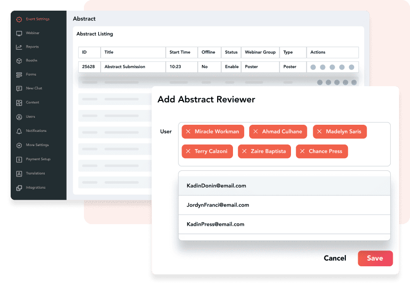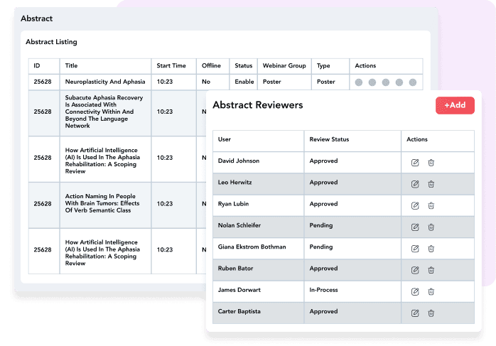 We offer an all-in-one abstract management solution that will facilitate you from the minute you send out your call for papers to publishing them at your conference. It’s simpler, quicker, and much more convenient because there are no third-party tools involved. You get to manage your submissions, reviewers, and your entire conference, all through the same platform!