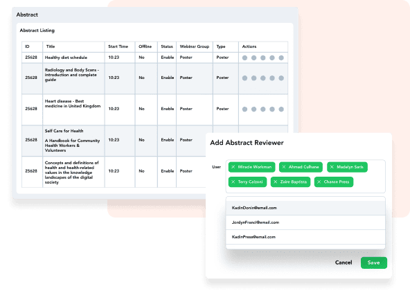 • Collect, review, and accept research papers through an integrated Abstract Management System.