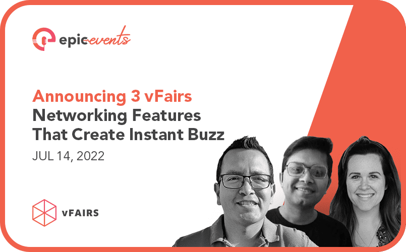 13 Jul 20221 HourAnnouncing 3 vFairs Networking Features That Create Instant Buzz Learn how to host virtual events that get people excited with Round tables, Match-Making & Spatial Networking View EpicEvent