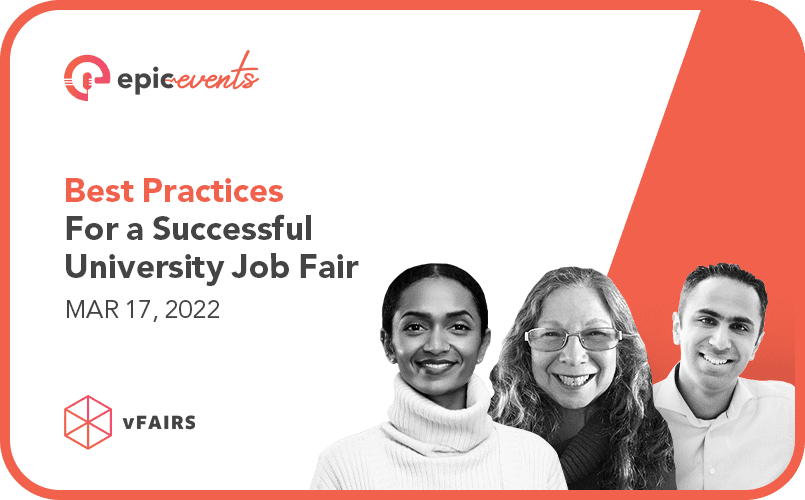 27 Apr 20221 HourVirtual Job Fair Tips to Help Job Seekers Find Top Placements Find out the secret to hosting successful virtual job fairs and help individuals land their dream jobs and grow in their careers. View EpicEvent