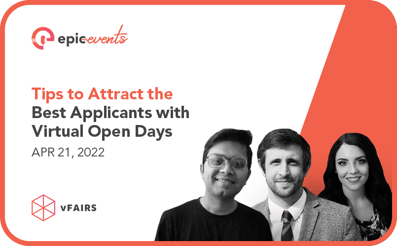 20 Apr 20221 HourTips to Attract the Best Applicants with Virtual Open Days Learn how to host open days that bring the best students from around the world to your school. View EpicEvent