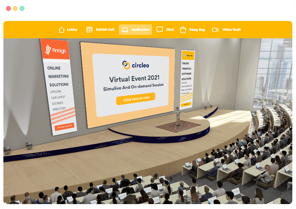 Create a custom landing page and virtual venue that immerses your attendees into your brand. Increase visibility with multiple spaces for virtual banners and other branding opportunities.