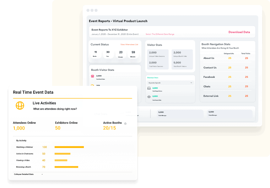 Extend your reach to a global market with vFairs. Showcase your products, host live demos, and collect orders through the vFairs virtual product launch platform.