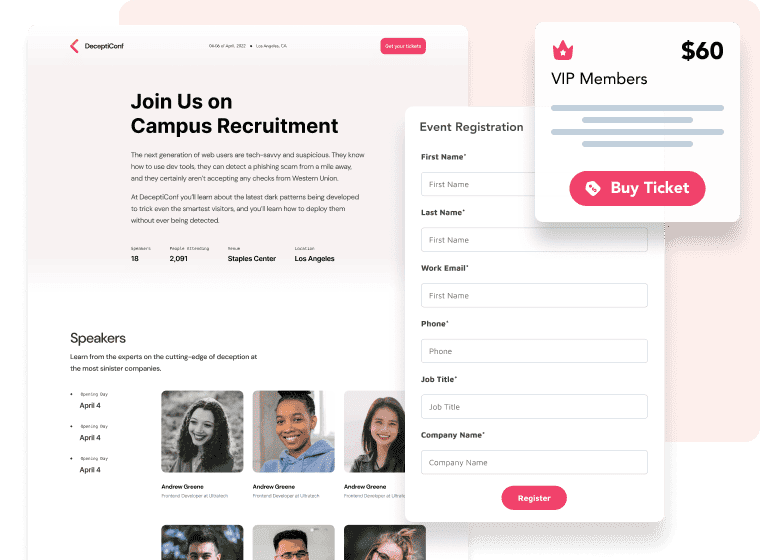 Showcase employer branding and elevate user experience with promotional videos, speaker bios, agendas, and sponsor info.