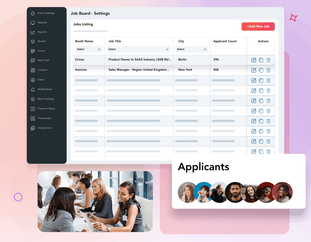 Let employers post jobs on their booths and engage students. Easily check in, match and connect graduating students with recruiters through chat, Q&A and sessions.