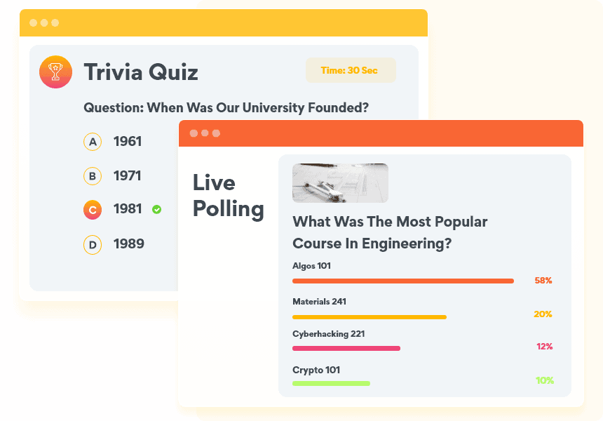 Keep your alumni coming back for more with our gamification features. You can host live leaderboards, scavenger hunts and trivia to keep your audience on their toes.