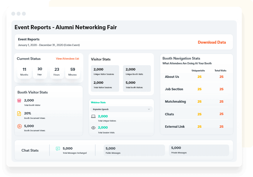 vFairs’ virtual event networking features help your global alumni body build and develop professional networks.